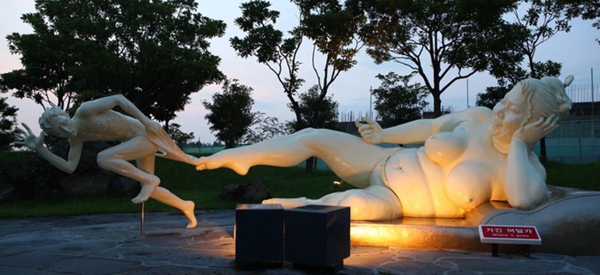 De har seg på ordentlig, statuene i Jeju Loveland i Sør-Korea. Mye våtere og stivere enn skulpturene i Vigelandsparken i Oslo.