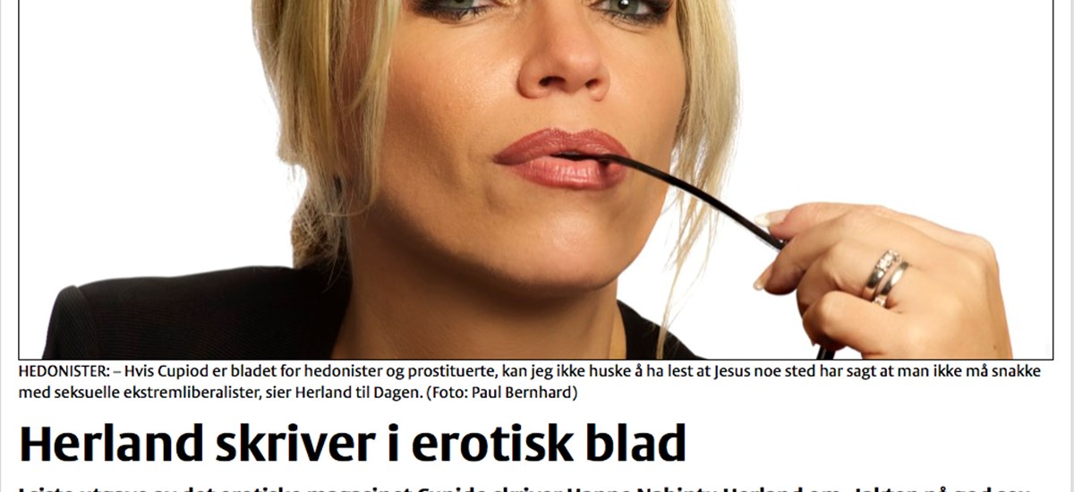 Hanne Nabintu Herlands kronikk i Cupido har fått stort oppslag i den kristne avisa Dagen. Hun sier selv at det var en stor glede å skrive for «det erotisk hedonistiske magasinet».